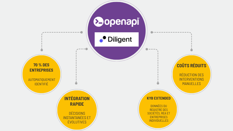 Grâce à l'intégration avec Openapi, la fintech infrastructure company accélère le processus de vérification des entreprises et permet des décisions instantanées pour les banques, les PSP et les institutions financières.